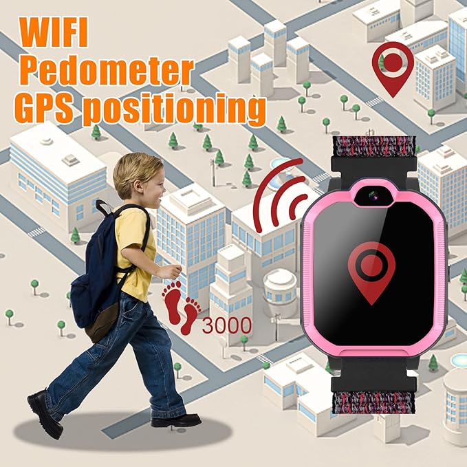 • WIFI LBS GPS Tracker: 4G WIFI LBS GPS real time positioning. It's also can check location history through the day. Know where your kids are anytime.When the child is in danger, press and hold the SOS button for 3 seconds, the GPS watch will automatically call and send information to the preset 3 phone numbers, which is very helpful to the child in an emergency.