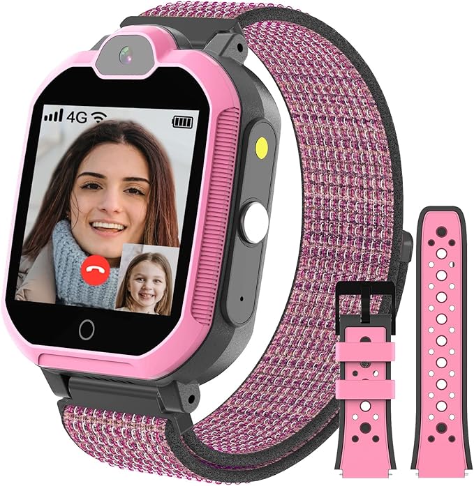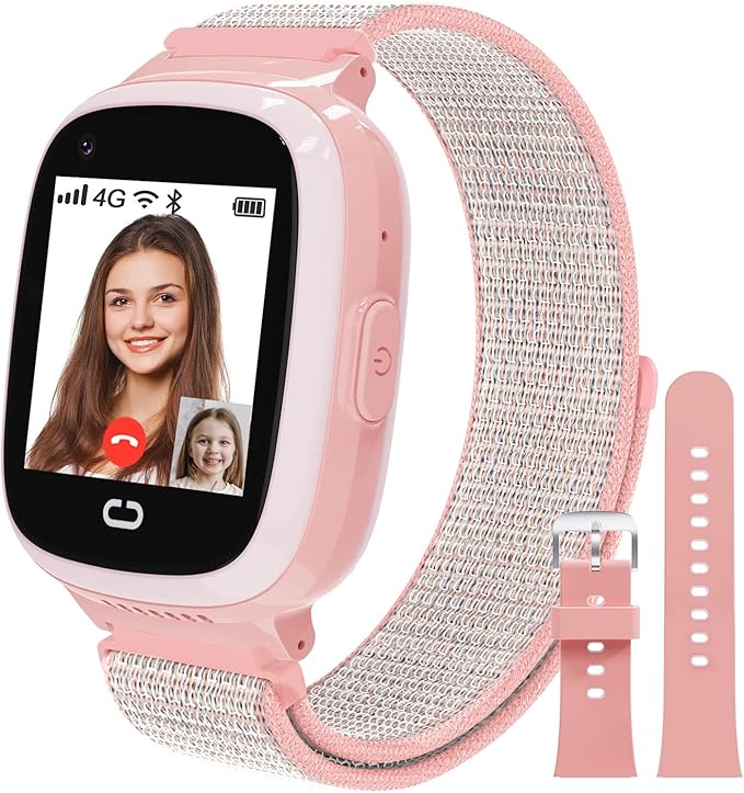 4G Kids Smart Watch, Kids GPS Watch with Call SOS Voice & Video Chat WiFi Bluetooth Music Pedometer Alarm Camera School Mode Easy-to-Remove Nylon Watch Strap, Wrist Watch for 4-12 Boys Girls