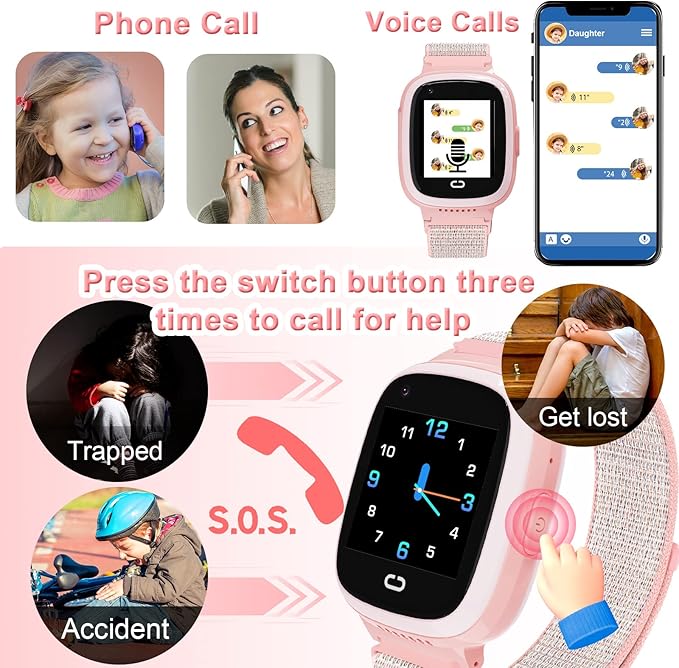 4G Smart Watch for Kids, Kids Phone Smartwatch GPS Tracker, Call, Voice & Video Chat, Alarm, Pedometer, Camera, SOS, Touch Screen WiFi Bluetooth Music Wrist Watch for 4-12 Boys Girls