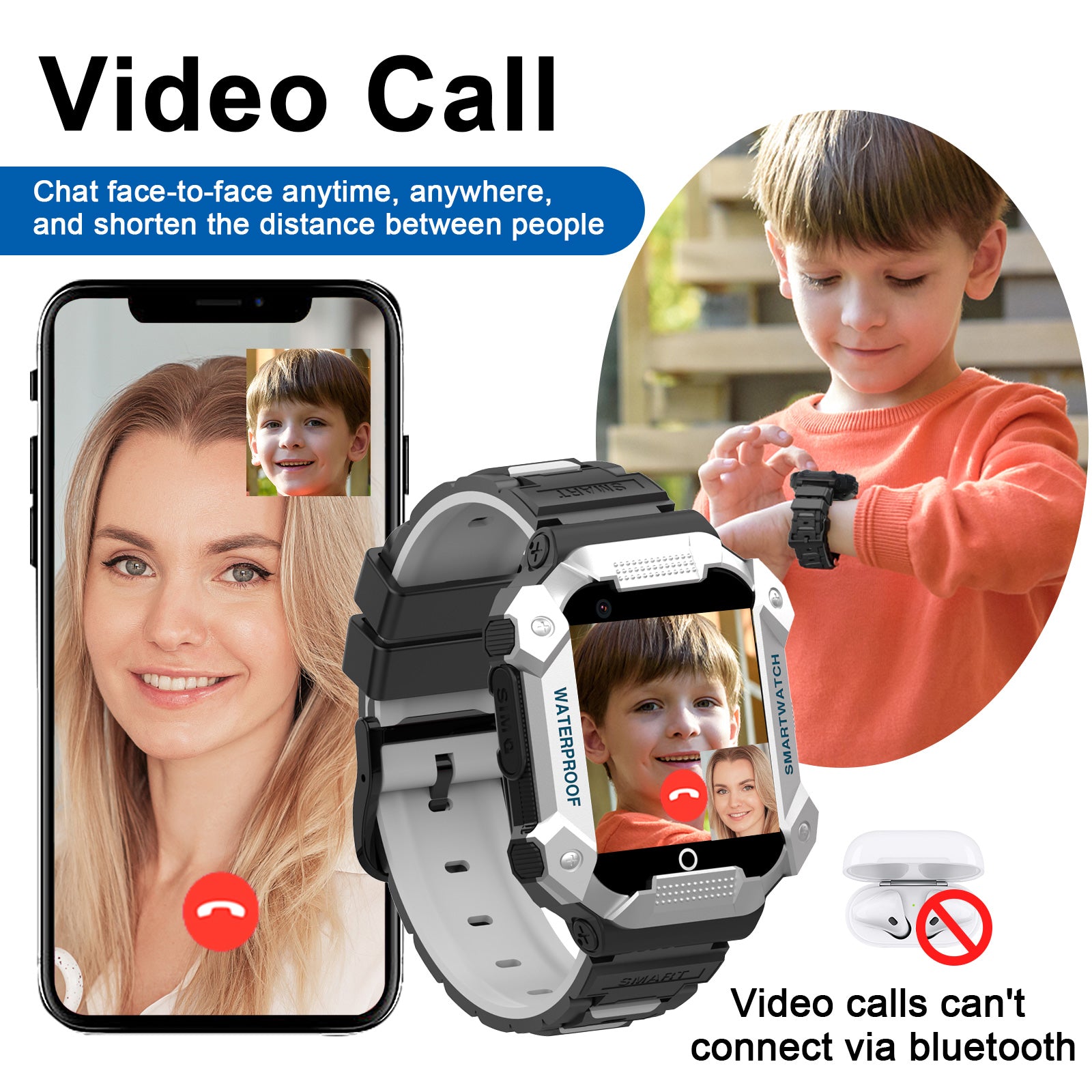 【Multifunctional 4G Kids Smartwatch】 smartwatch features GPS positioning, SOS, voice calls, video calls, health pedometer, math game, alarms, 4G net, call white list, calculator, phone book, stopwatch, take photos and videos