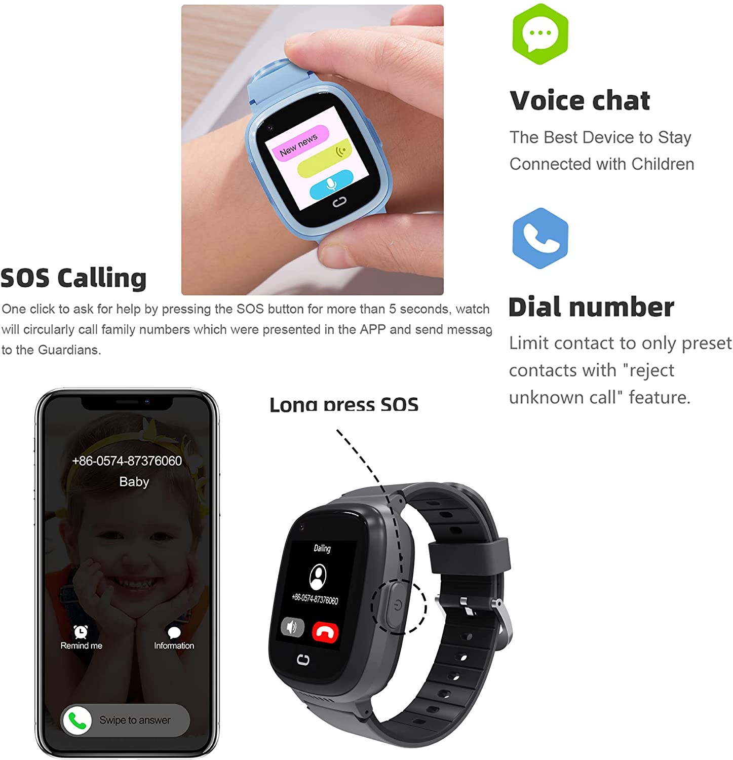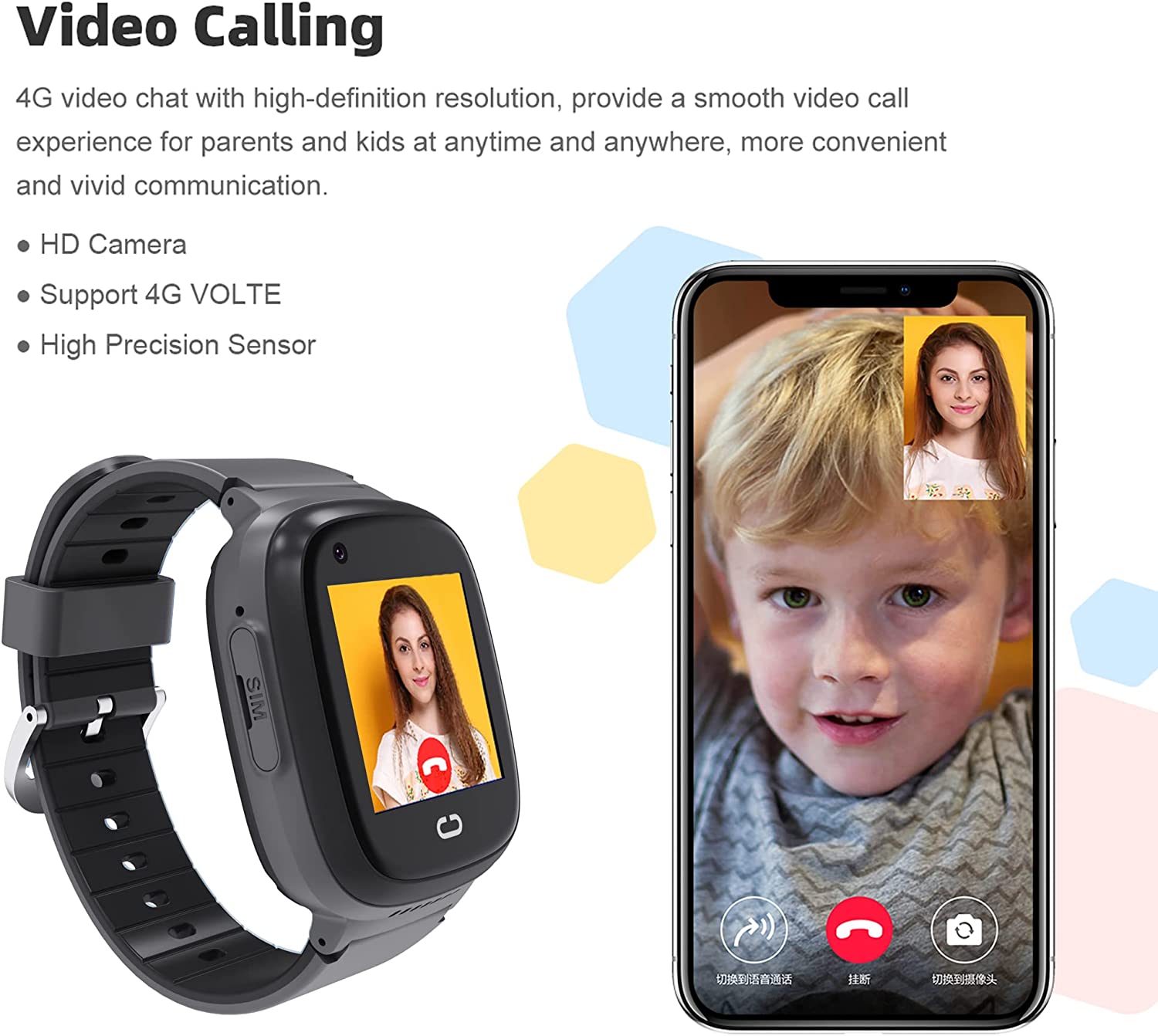【Video Call and Voice Chat】The new upgrade 4G smartwatch phone has a 2-way video call function, and face-to-face video calls with kids. Video and voice chat make communication more interesting and conversational. 4G connection makes kids GPS video calls more stable and clearer. Parents' watches and mobile phones can send voice messages to each other