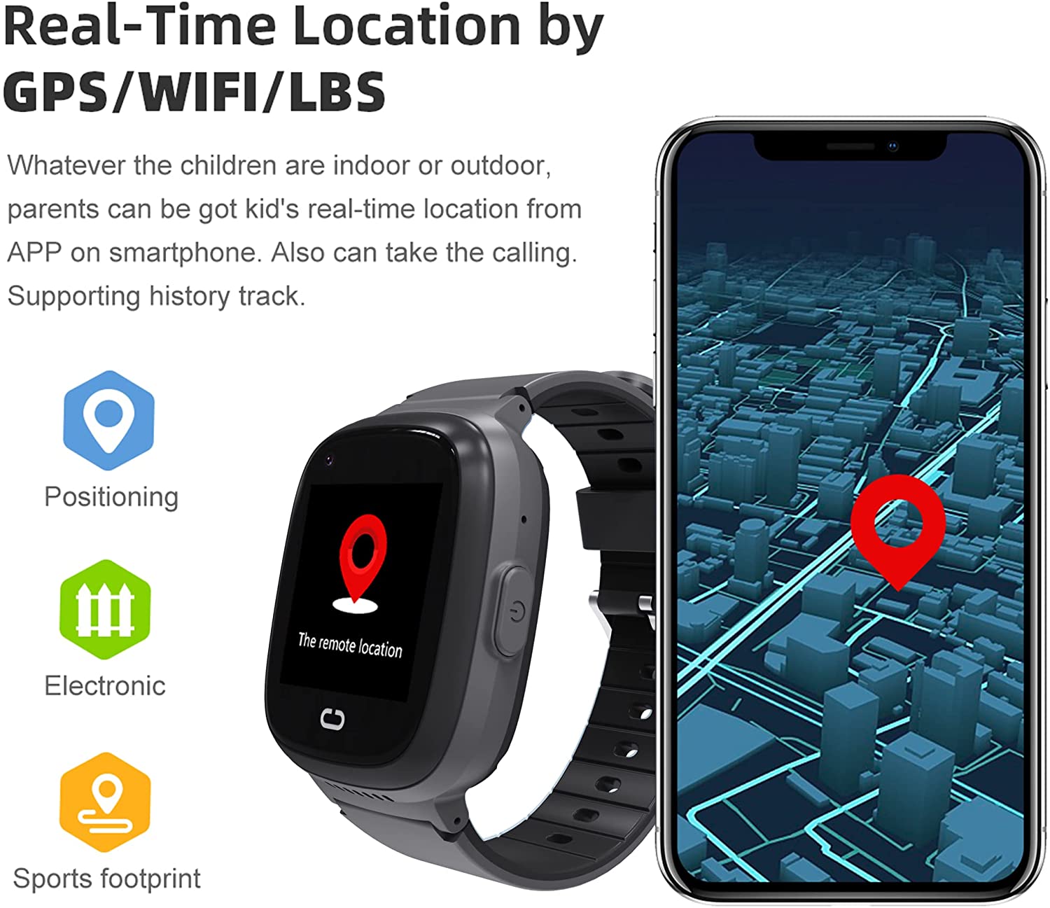 【Historical Route Track&Electronic Fence Alarm】Past positions of the GPS watch in the last 1 month are stored in the system for future checking. You can set up a safe area around the watch carrier. The watch will automatically trigger an alarm in your phone application once the watch wearer leaves the area